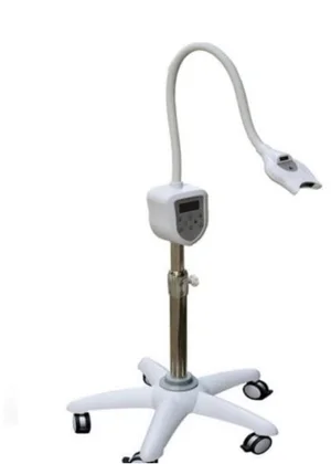 Our new product mobile teeth whitening machine has high power efficiency lighting with wheel design. The laser teeth whitening machine activates the small molecules in the oxidant hydrogen peroxide penetrates the enamel and dentin to all parts of the teeth moves between the enamel columella and decomposes and removes the pigment molecules that discolor the teeth. Please do not worry.